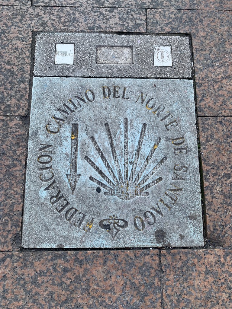 A stone in the sidewalk outside our alburgue in Santander.