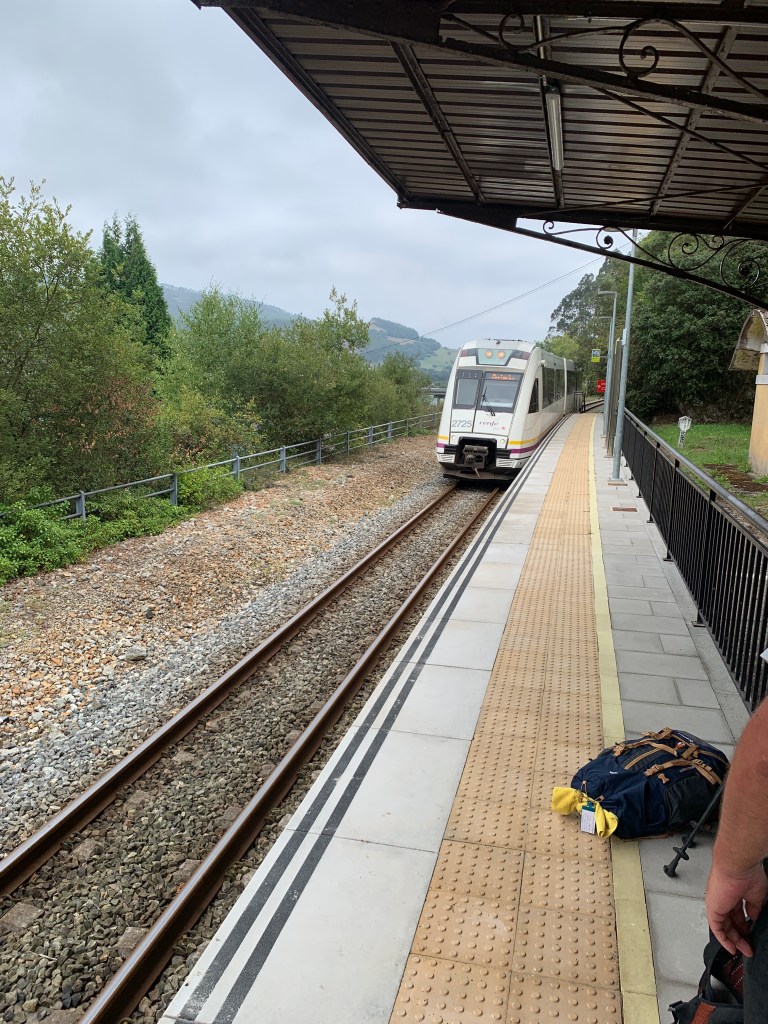 This morning we got up early and we were out of the alburgue at about 7:30 AM. We walked about six blocks to the train station and took the train to Mar, about 25 kilometers west of Santander. I know what you are thinking. Taking a train instead of walking is no way for a true pilgrim to start the Camino. The Way for the first 25 kilometers west of Santander is nothing but suburbs, factories and chemical plants. I don’t feel like I have anything to prove on this Camino so I am OK skipping the ugly parts and taking trains, buses, ferries or taxis to avoid walking through these ugly parts.