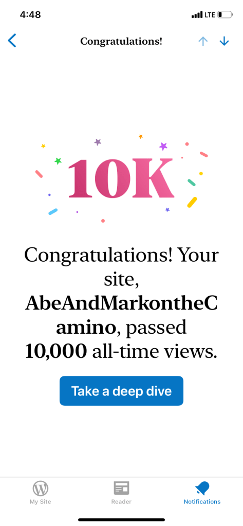 Today we walked 29 kilometers, took 37,000 steps and climbed the equivalent of 15 flights of stairs. The blog reached a milestone today, 10,000 views since I started it in 2018.