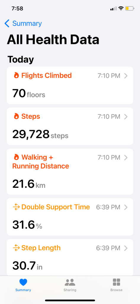I walked 35,000 steps, 25 kilometers and climbed 13 sets of stairs.