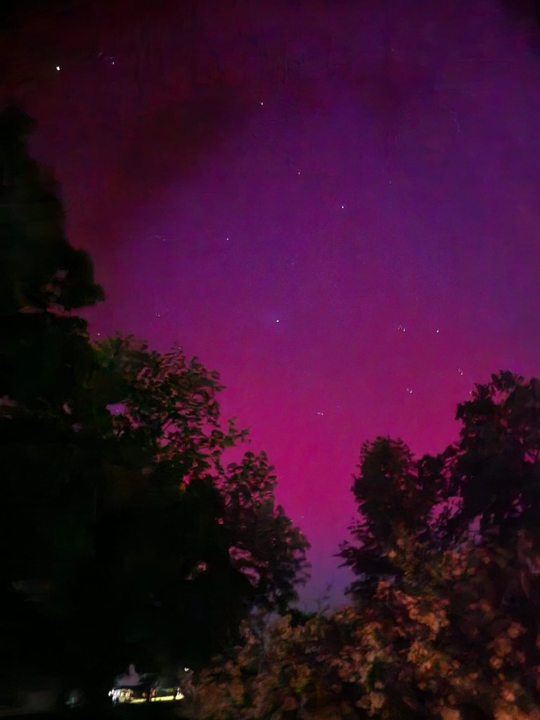 The river variant was really nice and shaded.Vicky and I had a light lunch at a vegan restaurant in Pontevedra. I had a raspberry smoothie and avocado toast. It was very good but meager rations for the long walk ahead.After leaving Pontevedra I departed from the Coastal Camino and turned left onto the Spiritual Variant. I will be on the Spiritual Variant for the next two days.As I was ambling along the Spiritual Variant I walked by this church. I went in and said a prayer for everyone. As my father used to say about prayers: “ It can’t hurt. “I finally got to my alburgue in Combarro. It is very nice.I got a lower bunk bed with sheets and towels and a blanket. I am living large!This is the washing machine at the alburgue. My clothes are in that washing machine. Other than hand washing I haven’t washed my clothes in two weeks. I have a pretty high threshold for unacceptable stench and at the end of today the stench from my clothes was bothering even me.This is the view from the backyard of my alburgue. Not too shabby.The restaurants don’t open until 8:00 PM. I am not eating that late so I got some provisions at the grocery store. A ham and cheese sandwich with all the fixens.Pictures of the Northern Lights from New Berlin, Illinois.