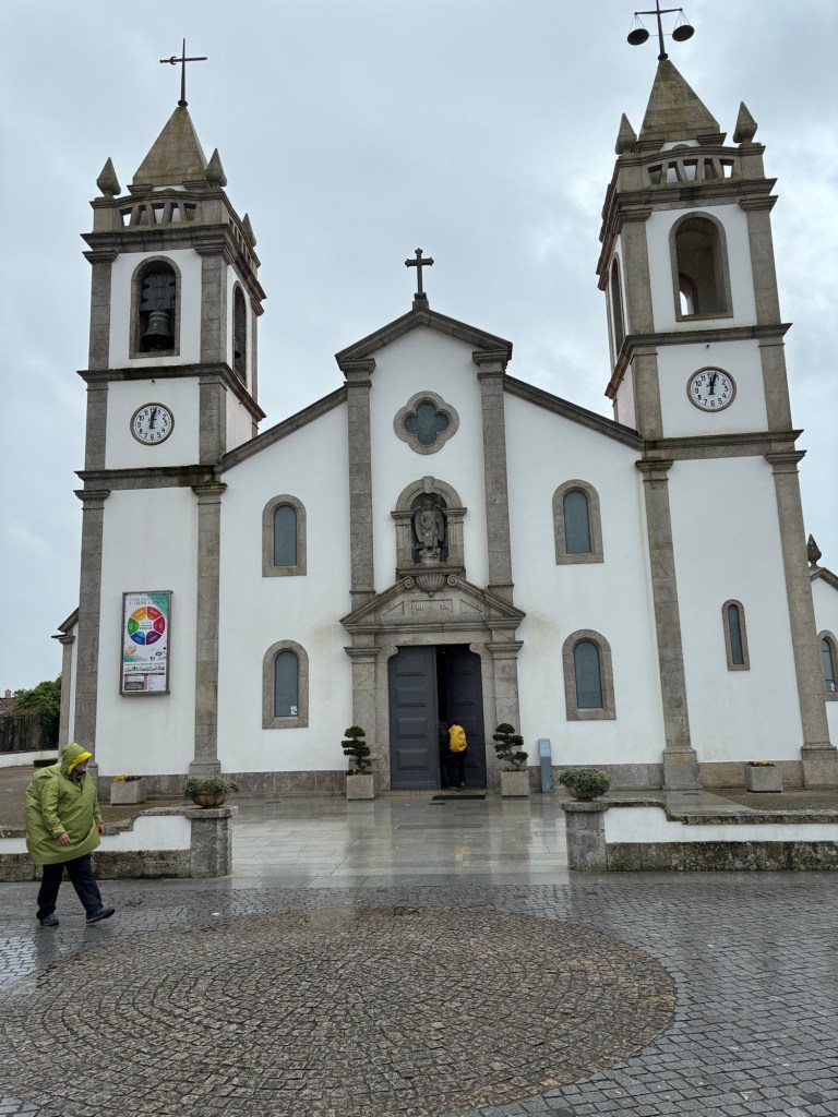 When I got up this morning it was raining buckets and the clouds had descended on Mount Santa Luzia diminishing visibility to almost nothing. I slept in, had breakfast and packed my backpack before heading over to the church for the 11:00 AM mass. The church was freezing and the roof was leaking and the church was almost empty, but I got down on my knees and prayed for a cessation of this constant Noah’s Ark rain.