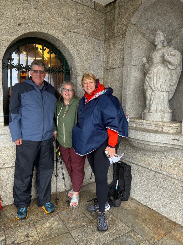 The church didn’t have heating and the roof was leaking and it was drafty because bus loads of tourists kept coming and going. After an hour or so I decided to go out and look around. It was still raining so I ran over to the gift shop which had a generous overhang. I was soon joined by Peg and Sue.