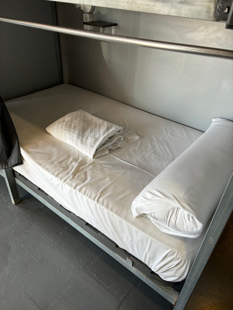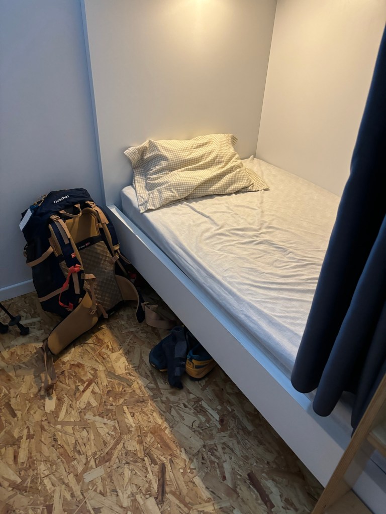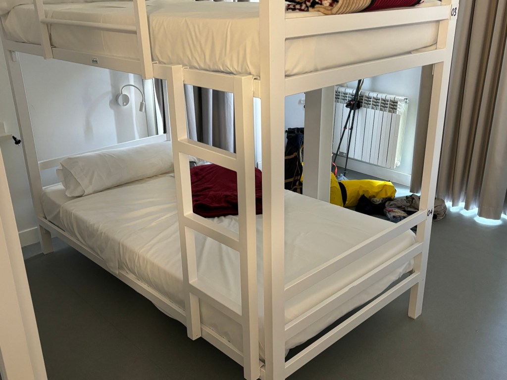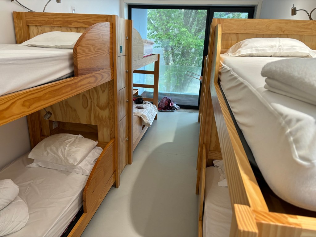 The bunk rooms are clean and bright and we get sheets and a blanket.