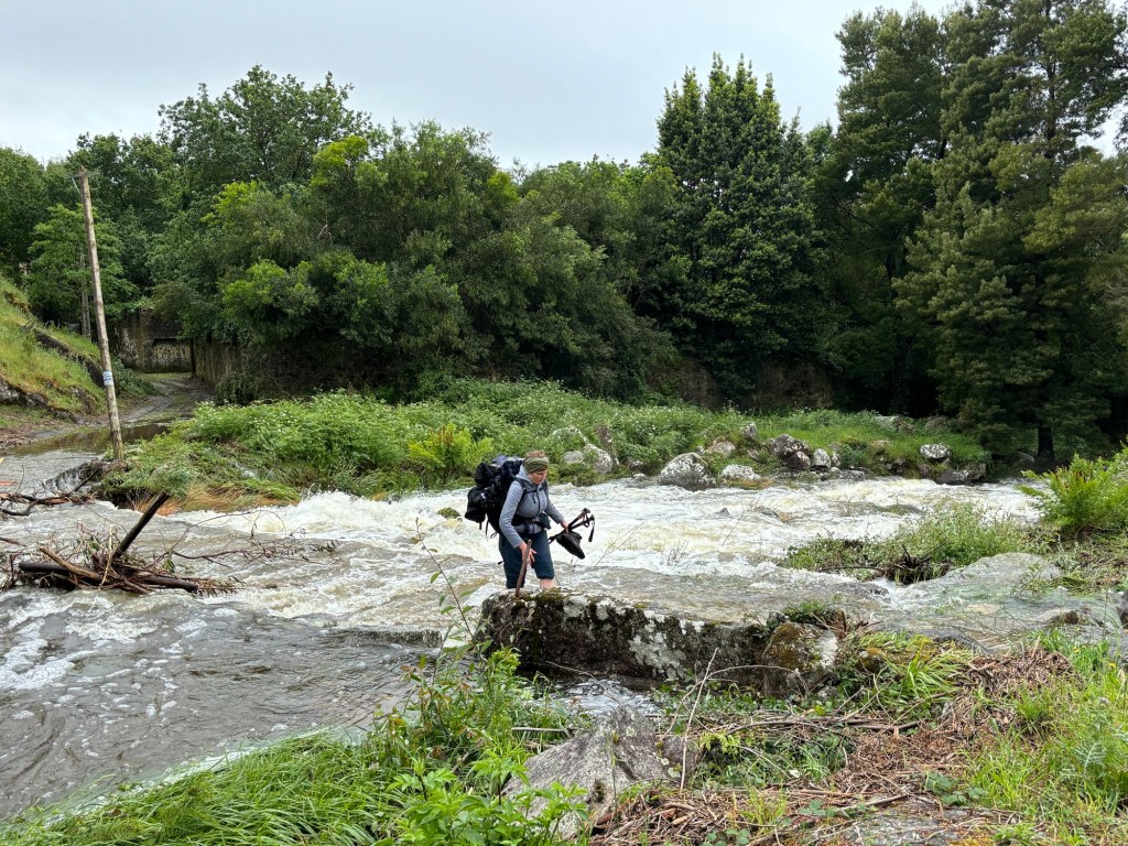 I couldn’t find a place to stay in my intended end point, Esposende, so I wound up walking another 5 kilometers in a torrential downpour to get to Marinhas and the municipal alburgue. Thank God they are open and thank God I got a bottom bunk. This is not a complaint it is just an observation, the water in the shower was freezing cold. And I was really looking forward to a nice, long, hot shower. These things happen at an 8 dollar a night municipal alburgue.