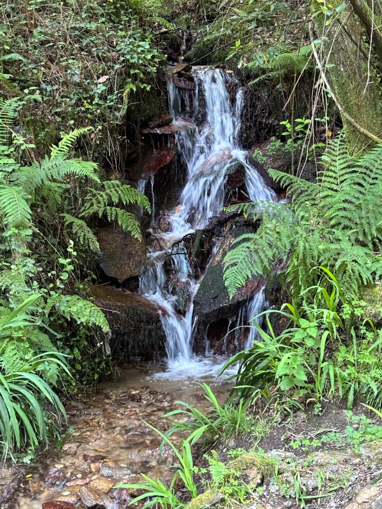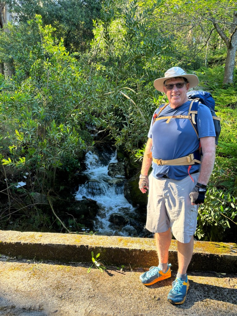 The recent rains have swollen the streams so that they are spilling out from their banks. And my gut is spilling out over the hip belt on my backpack.Once we got over the hill and out of the forest we got a great view of the Atlantic.The flowers are really putting on a show. I walked most of the day with Rafael and Judit. They live in Florida and are both retired. Rafael has bad blisters and he is really suffering.