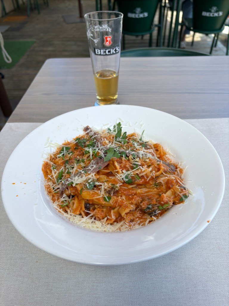 Rafael and Judit couldn’t walk all the way to Caminaha. They stopped at an alburgue about 5 kilometers short of Caminaha. After I dropped them off it was 2:00 and I was hungry. I walked by an Italian restaurant and decided to have lunch.
