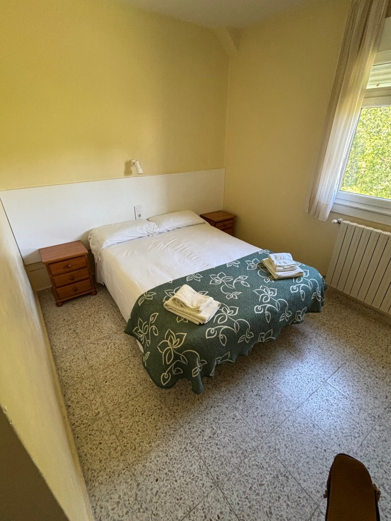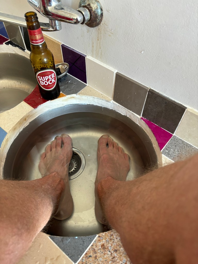The bunk room is pretty basic and the bed springs have sprung.The alburgue does have a foot bath. You alternate hot salted water and cold water. My feet are tired but the foot bath gave them some relief.