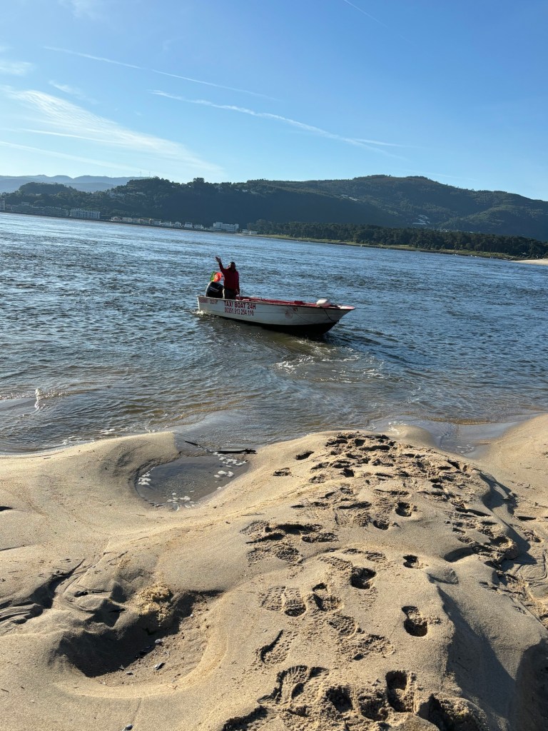 After breakfast at the alburgue it was time to cross the Minho River from Portugal to Spain. A shuttle driver picked us up at the alburgue to take us to the boat.