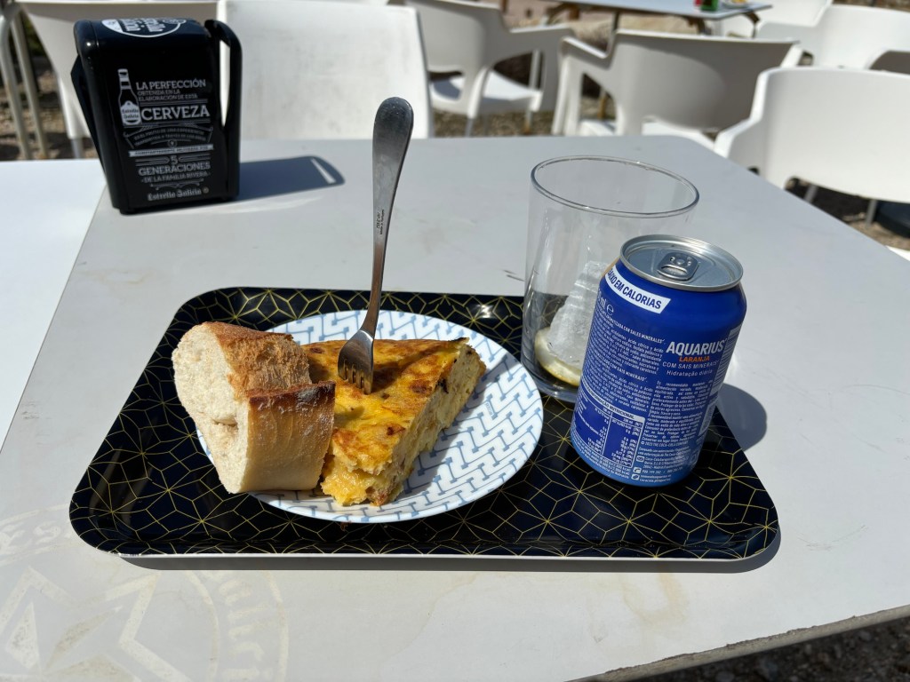The alburgue provided a breakfast of toast with a tomato spread and orange juice. Those are sparse marching rations.