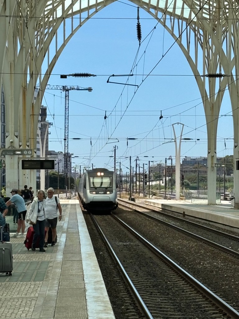 This train station is very modern and the Portuguese are very proud of the design.This is my train arriving at the station right on time.