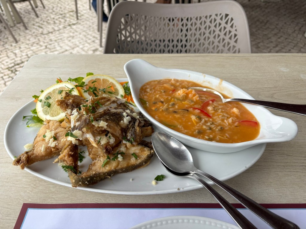This is a memorial to the men of Aveiro who lost their lives in World War One. Their names are inscribed on this memorial. Apparently Aveiro lost eight men in World War One. Aveiro is not a small town. When Sara and I visited Beaune, France, which is a small town, they had a memorial for the men of Beaune who did not return from World War One.Almost every male villager in Beaune between the ages of 17 and 30 fought in World War One and most of them did not return. I am not denigrating Aveiro’s losses as a result of the First World War. But Aveiro’s losses pale in comparison to the losses suffered by the citizens of Beaune and every other city, town and village in France.Craft beer is everywhere.Rotary is also everywhere.You see this all over Spain and Portugal. The Spanish and Portuguese people generally refuse to drink the tap water. They claim that if they drink the tap water they will get deathly ill. This is crazy. I have been drinking the tap water since I got here and I have had no GI issues. Can you even imagine the plastic waste these people are generating when they exclusively drink bottled water.Lunch. Fried John Dory with sea rice, which is rice in a broth with shrimp and mussels, and a nice glass of green wine.