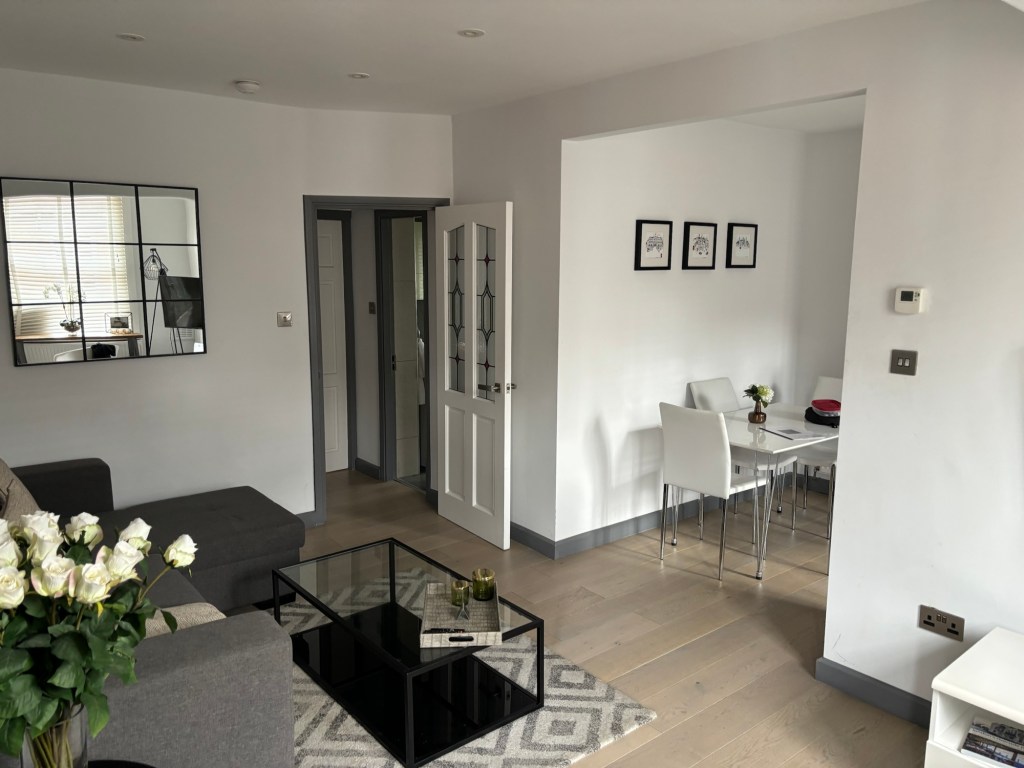 The apartment has a nice living room and kitchen and two small bedrooms.