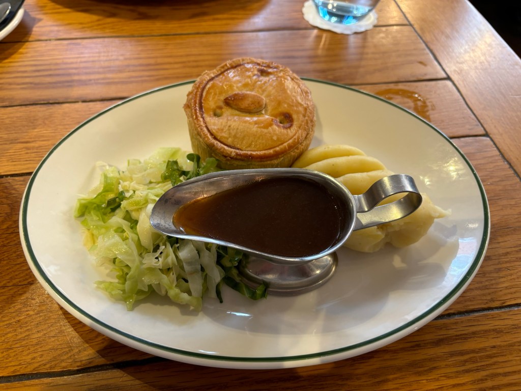 I had a chicken and bacon and leek pie with mashed potatoes and a pint of ale. It was a real stick to your ribs lunch.