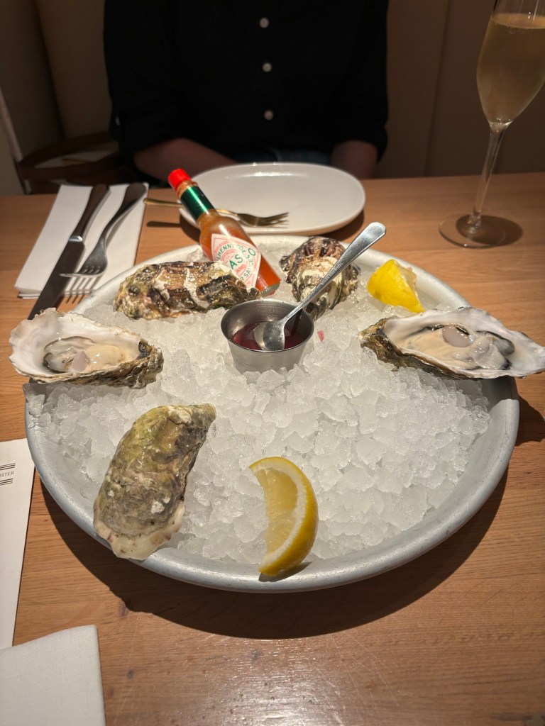 We started with oysters on the half shell.I had monkfish on a bed of mashed potatoes with a lobster sauce. Yum!For dessert I had a passion fruit cheese cake.