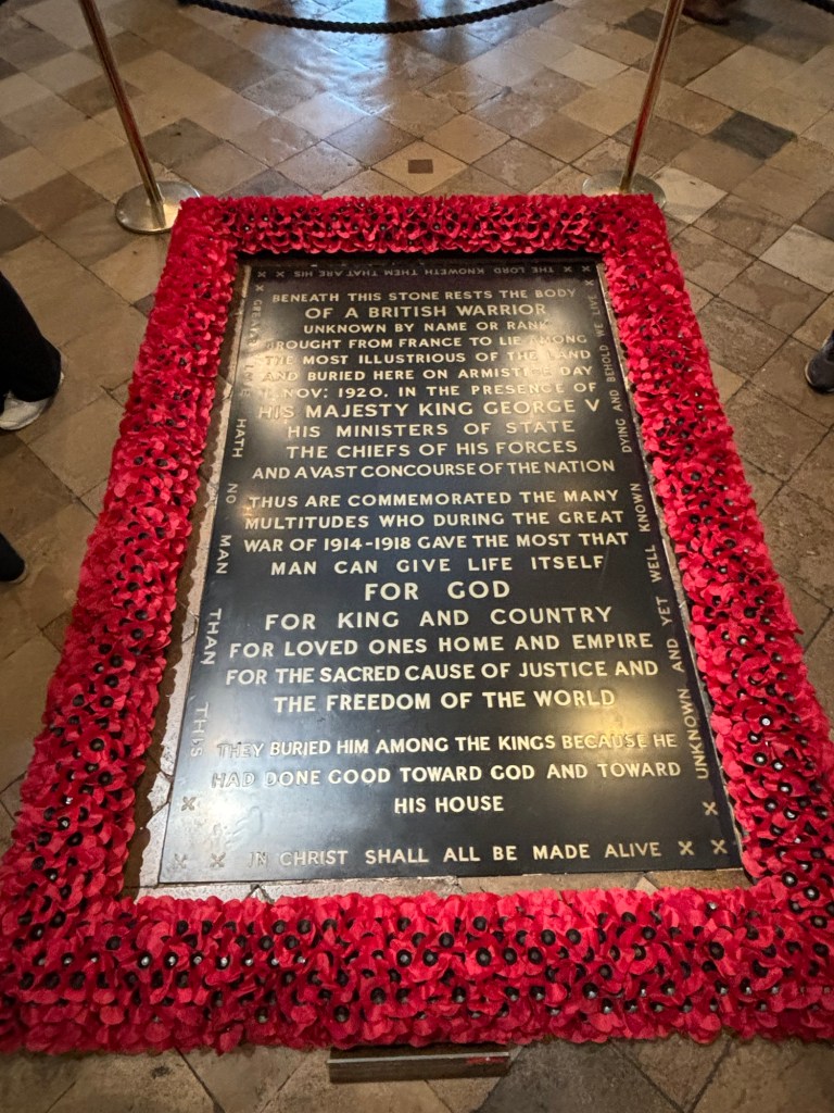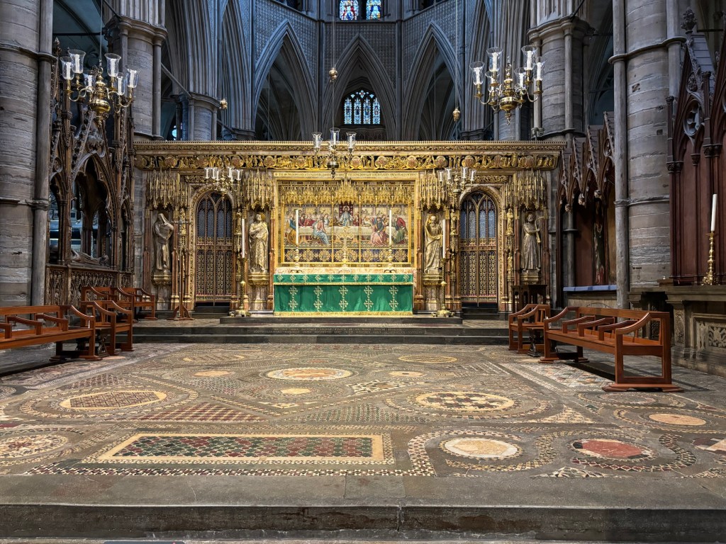 The tomb of the unknown soldier from World War One always moves me.Beautiful stained glass windows in Westminster Abbey.The altar. The floor is over 1000 years old.Touching memorial.