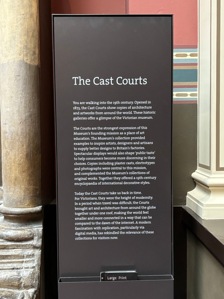 This museum has great exhibits of original artwork and artifacts for the Middle Ages. The museum wanted to expand its collection and original art and artifacts were getting harder to find and it was getting harder to export these priceless treasures from their countries of origin. So, instead of obtaining the originals the Brits obtained plaster casts of the originals. Brilliant!