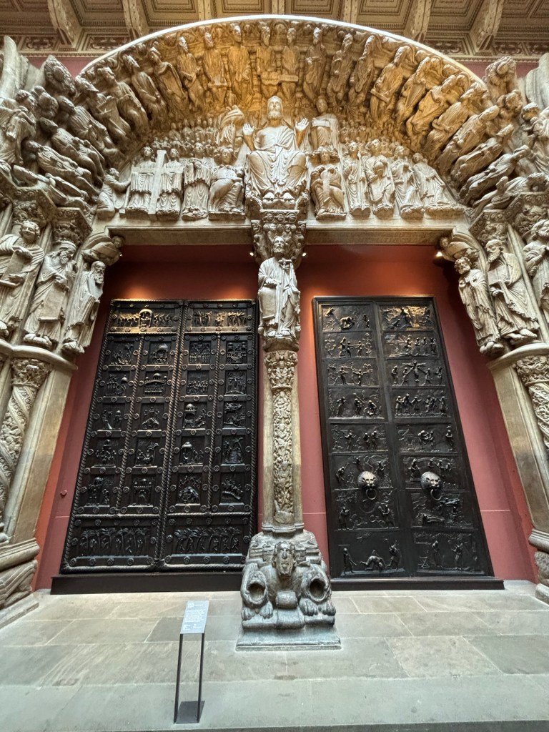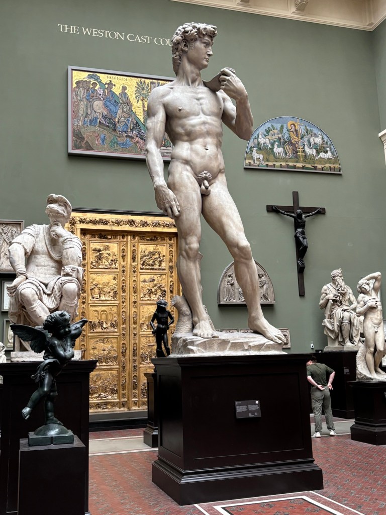 Trajan’s Column. The original is in Rome and commemorates Emperor Trajan’s military genius. The museum had to cut the plaster replica of this column in half to fit it into the space. This is a full sized plaster replica of Michelangelo’s David.Portico of Glory from the Cathedral at Santiago de Compostela.